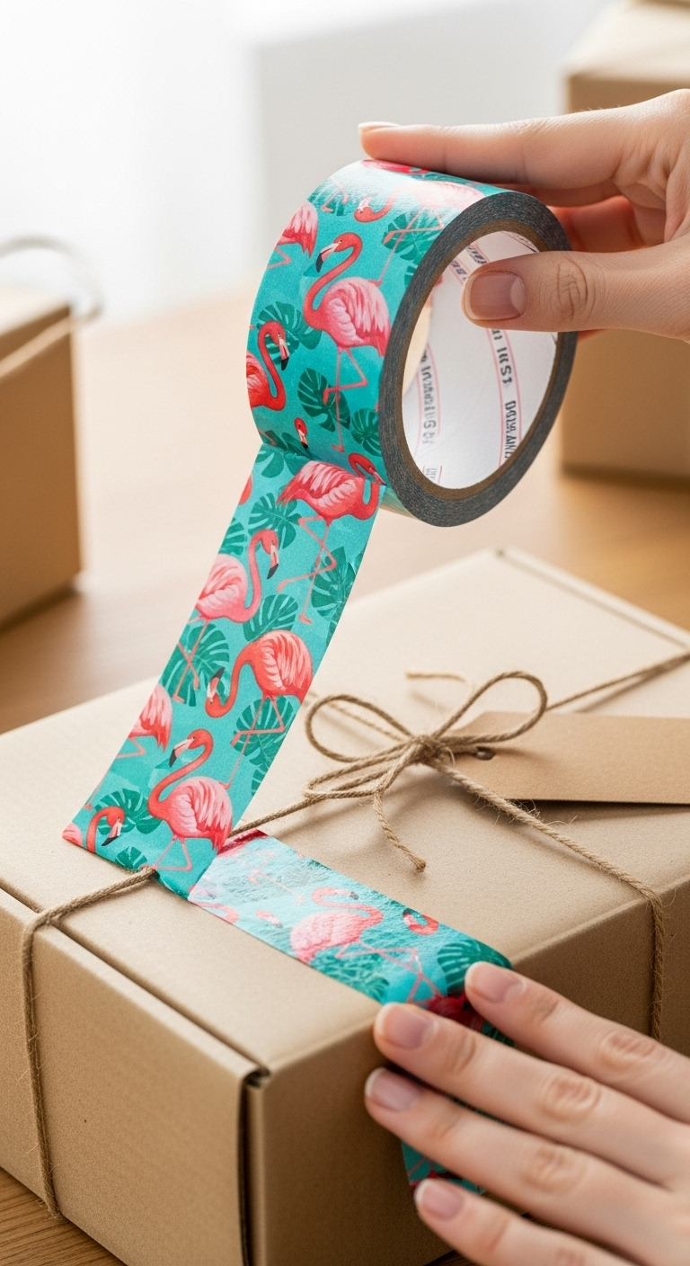 Sıradan bir kargoyu unutulmaz bir deneyime dönüştürün! Bu eğlenceli ve şık flamingo desenli dekoratif koli bandı, standart ambalajlamanın çok ötesine geçer. Özellikle e-ticaret butikleri, hediye mağazaları ve müşteri deneyimine önem veren markalar için tasarlanmıştır.