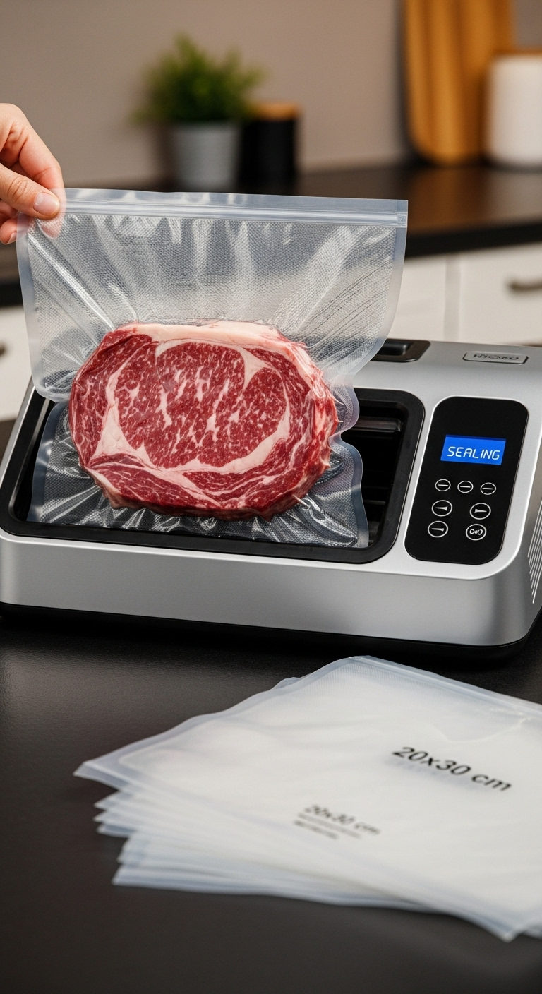 Gıdalarınızı profesyonelce saklayın, tazeliklerini haftalarca koruyun. Bu 20x30 cm boyutundaki hazır kesilmiş vakum poşetleri, standart porsiyonlar için hızlı ve pratik bir kullanım sunar. Et, balık, tavuk, peynir veya taze sebzeler gibi gıda ürünlerini vakumlayarak, hava ile temaslarını tamamen keser. Bu işlem, bakteri üremesini yavaşlatır ve yiyeceklerin raf ömrünü buzdolabında veya dondurucuda 5 kata kadar uzatır.