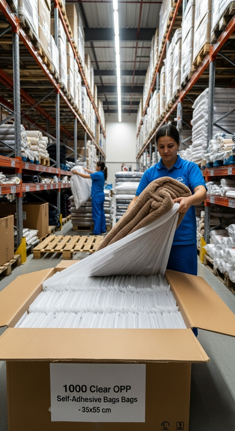 1000 adetlik toptan koli, yüksek hacimli üretim yapan tekstil atölyeleri, e-ticaret depoları ve büyük perakendeciler için birim maliyeti en aza indirir. Güçlü yapışkanı ve dayanıklı filmi ile en büyük ürünlerinizi bile güvenle korur ve sunar.